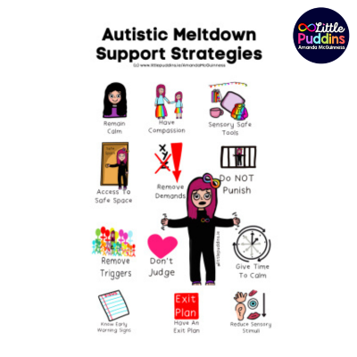To support you in this process, we’ve created Free Meltdown Informational Posters for you designed to help prevent and manage Autistic meltdowns. You can download your free Autistic Meltdown resource by clicking here.